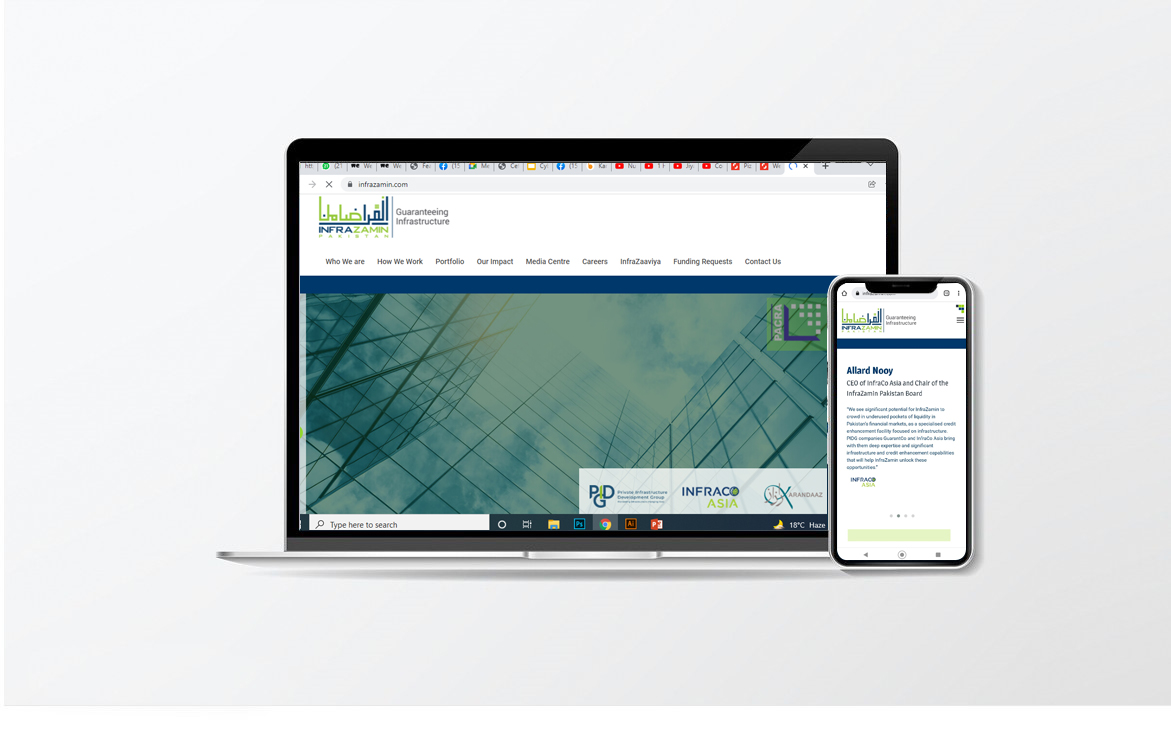 Conceptualized and designed the brand identity, strategy, logo and website for Infrazamin Pakistan, an innovative, for-profit credit enhancement facility funded with equity capital from InfraCo Asia Investments and Karandaaz Pakistan.